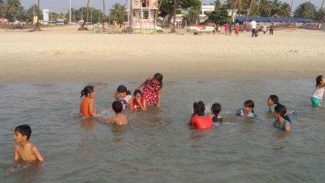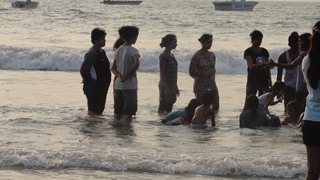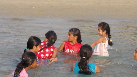 we went to Colva beach , all enjoyed splashing and puddling in the water.