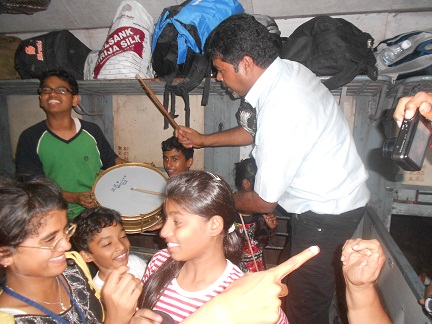 On the way back in train we enjoyed playing drums,singing antakshari and