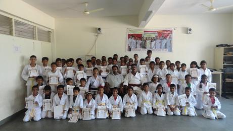 the karate exam and secured the yellow belt and three of them secured A+