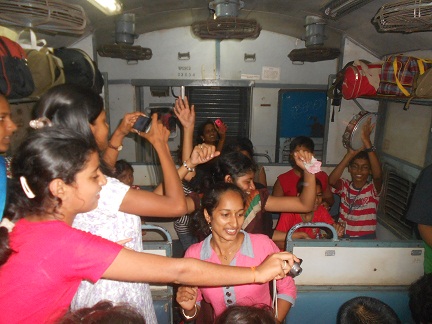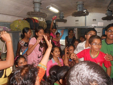 On the way back in train we enjoyed playing drums,singing antakshari and